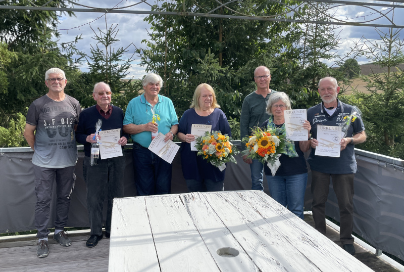 Bildern aus früheren Zeiten, einem Podcast und Ehrungen für unsere Gründungsmitglieder bei viel leckerem Kuchen und Gegrilltem. - Herzlichen Dank an alle Kuchen- und Salatspender, dem "Grillmeister" und allen "helfenden Händen".